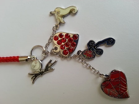 - 5 Metal Charms including Two Hearts, A Rose, Jack Skellington and Zero