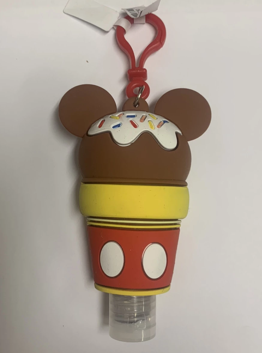Keep your memories of Walt Disney World free of germs with this removable decorative Mickey Ice cream Hand Sanitizer with cover, and a 1oz bottle of Hand Sanitizer.