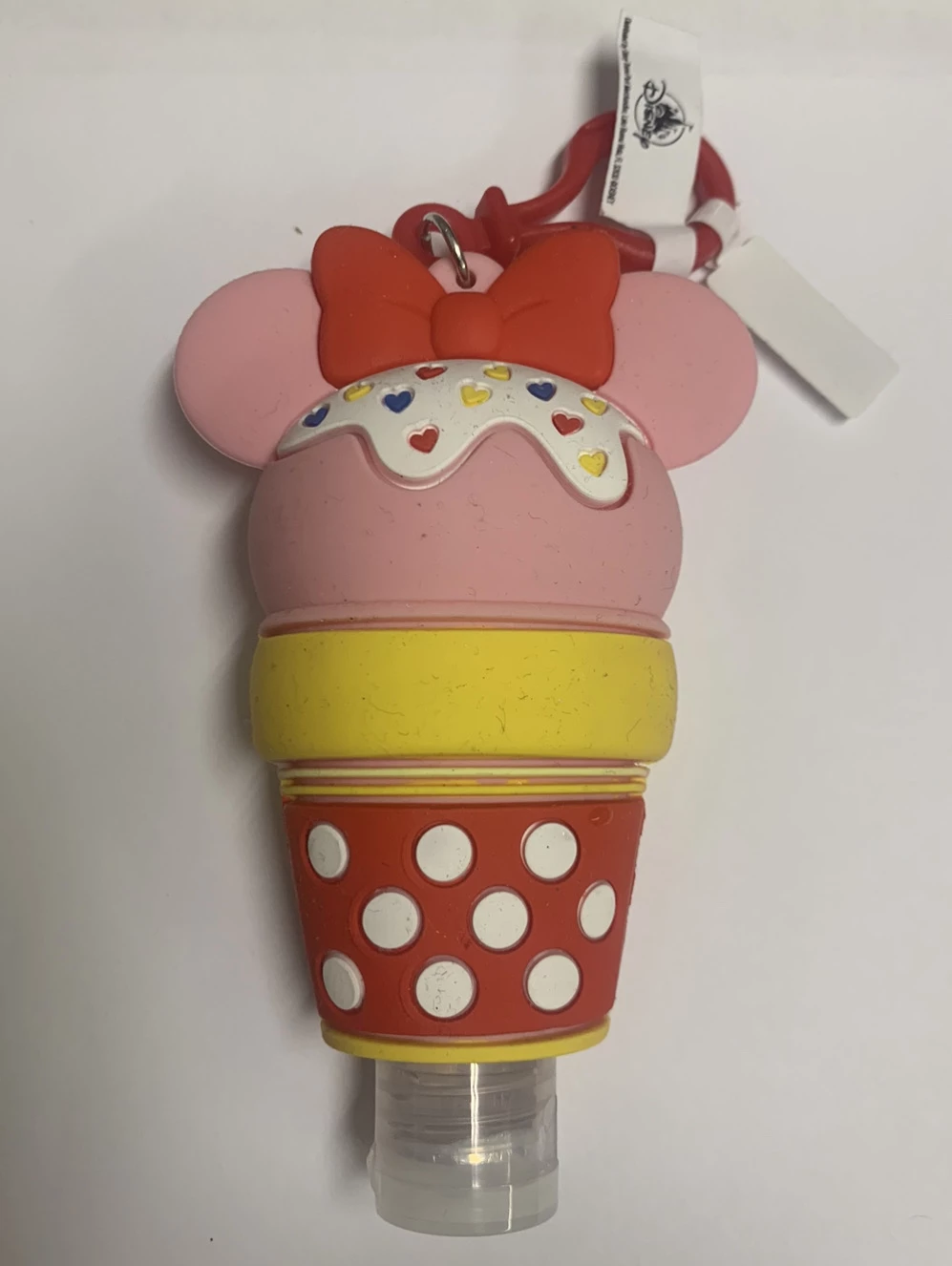 Keep your memories of Walt Disney World free of germs with this removable decorative Minnie Ice cream Hand Sanitizer with cover, and a 1oz bottle of Hand Sanitizer.