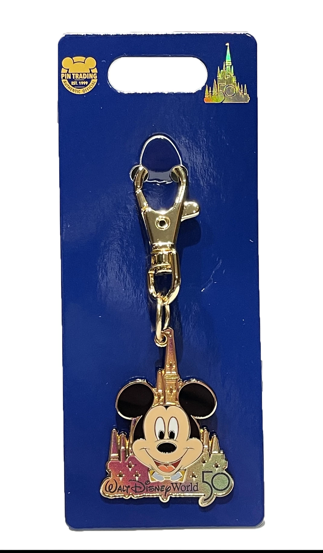 Bring Mickey on your Travels with this sweet Mickey with Castle Keychain with Walt Disney World 50 Logo.