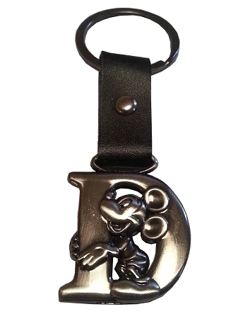 Add a touch of Disney to your keychain, with this brushed metal Initial Keychain. Features a Initial with with Mickey, hanging by a leather strap.